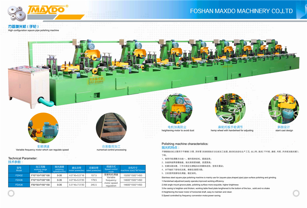 廣東麥多智能裝備有限公司坐落于中國不銹鋼生產基地名城——佛山,是一家集研發、設計、生產、銷售、配套服務于一體的多元化不銹鋼焊管機械設備制造商。本公司憑借其得天獨厚的地理優勢、專業高效的管理團隊和強大的銷售服務能力,麥多智能得以快速發展,服務輻射全中國及東南亞、歐美各地,推動了不銹鋼焊管機械機械產業向更高、精、尖的前沿拓展。廣東麥多智能裝備有限公司,是一家專業生產和銷售不銹鋼制管機、焊管機、拋光機的廠家。我們主營圓管拋光機、方管拋光機、通用型拋光機,超大型廠房,一流的產品質量,上千家合作客戶,歡迎來電咨詢洽談!本公司技術力量雄厚,整體素質強。擁有一支專業焊管產品研發團隊、管理團隊、多名精干技工,還建立了先進的電腦模擬實驗室和設備研發實驗車間。公司嚴格執行ISO9001國際質量管理體系標準要求,經過數年的發展與創新,通過公司全體同仁的孜孜追求,充分利用現代化管理和先進的精密機械加工設備,建立起遍布國內外的完整經營體系,確保產品質量和完善的售后服務為公司贏得了大批忠實客戶。麥多智能奉行“為客戶創造精至機械、真誠的優質服務;為不銹鋼拋光機械行業創造和諧的市場環境”的企業使命,堅持“以人為本、唯...